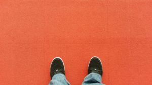 Bon, comme on voyage en business class, on nous a quand même déroulé le tapis rouge, ce qui contraste bien avec mes chaussures. Si si, je vous jure, voyez par vous même !