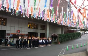 Une fois inspirés du lieu, nous reprenons notre route vers notre destination finale et une fois au pied de celle-ci, nous trouvons une classe effectuant une parade (?)…